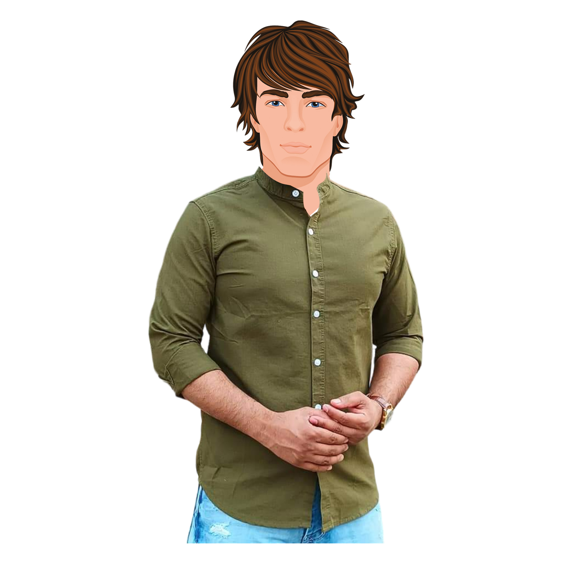 Band collar Menโs Solid Color Cotton Shirtย