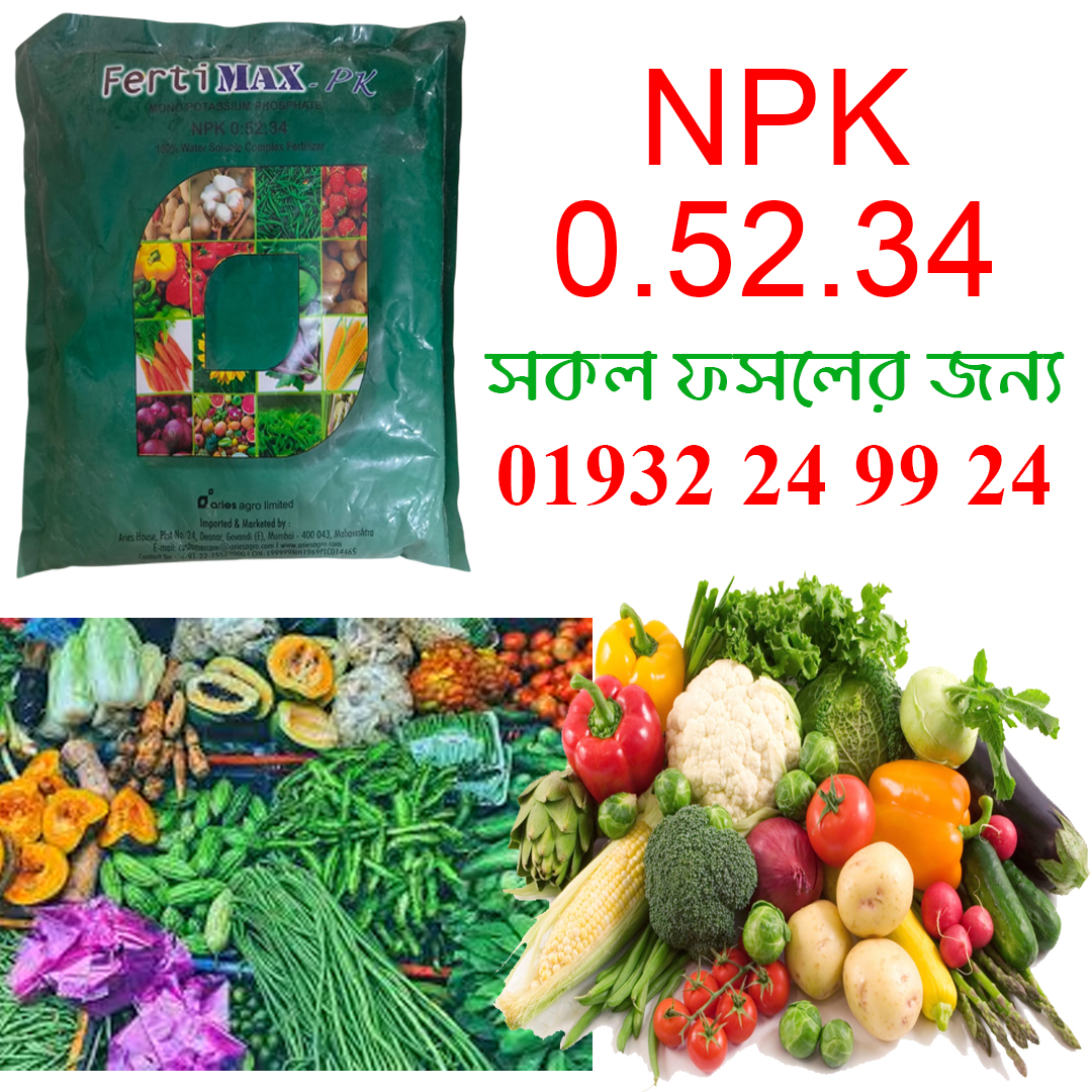 এনপিকে ০-৫২-৩৪ একটি উচ্চ ফসফরাস ও পটাশিয়ামসমৃদ্ধ পানি-দ্রবণীয় সার, যেখানে—